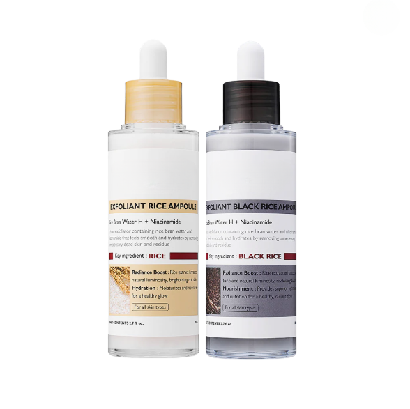 Svart ris-extract (Oryza Sativa Bran Water), Dipropylenglykol, Vatten, Tripropylenglykol, Cellulosa, Propandiol, Butylenglykol, Glycerin, Karbomer, 1,2-Hexandiol, Steartrimonium Methosulfate, Saccharide Isomerate, Isopropylalkohol, Glycereth-25 PCA Isostearate, Hydroxyacetophenone, Cetyl Ethylhexanoate, Ethylhexyl Palmitate, Squalane, Ethylhexylglycerin, Sucrose Distearate, Caprylic/Capric Triglyceride, Parfym, Hydrolyserat Gardenia Florida-extrakt, Hydrolyserat Malt-extrakt, Hydrolyserat Viola Tricolor-extrakt, Disodium EDTA, Hydrogenated Lecithin, Hyaluronsyra, Hydrolyserad Hyaluronsyra, Natriumhyaluronat, Niacinamid, Svart ris-extract (Oryza Sativa Extract), Citronsyra, Natriumcitrat, Aktivt kol, Polyglycerin-10, Polyglyceryl-10 Myristate, Polyglyceryl-10 Stearate, Arbutin, Gluconolactone, Salicylsyra, Natriumdehydroacetat